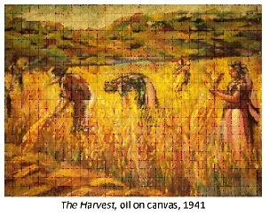 “……Mr Misra’s pictures are alive and vital. He has a keen eye for the subject allied to a vigorous, and in his more recent works, experimental technique which may develop into a powerful mode of expression. He is a craftsman, as his preparation of plywood with gelatine and sand for the rough surface of “Harvest” proves—a picture which brings Van Gogh’s France to the fields of Shillong most successfully..”