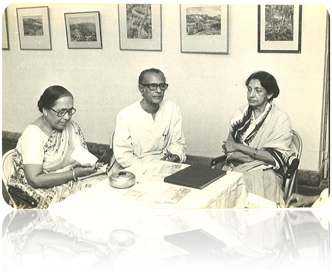 Left to right- Mrs. Bina Misra, Hemanta Misra and Lady Ranu Mukherjee